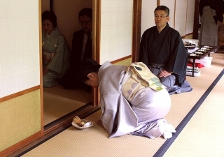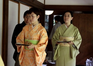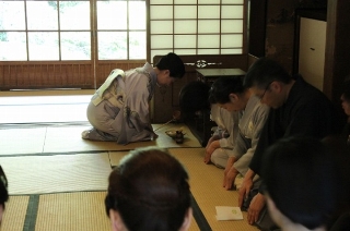 | 感謝の意を込めて、いよいよお点前の開始です。流石に後見の弟子共々緊張しています。 |
