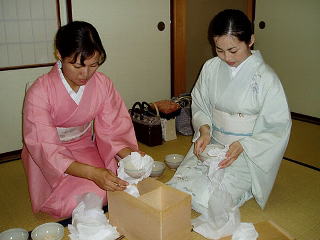 | めでたく師範となった我が社中のホープのお祝い茶事を開きました。社中皆で、心からの「おめでとう」を込めて・・・ 今日の主役Eちゃんは、第一回目の茶会から裏方として頑張ってくれました。 今は纏め役として、社中の人気者です(もしかすると、私より・・・)。 |