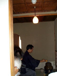 | 出席者多く炭点前・濃茶は二回にわけました。亭主が大変!と、手替わりを引き受けた、こちらも弟弟子(実年齢は上ですが・・・) | |||